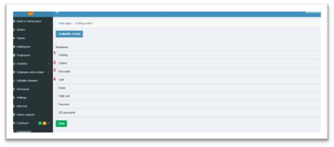 At the same time, the menu section that is in the first position will be the default screen (when you log in to the Retailer application, this screen will open first).