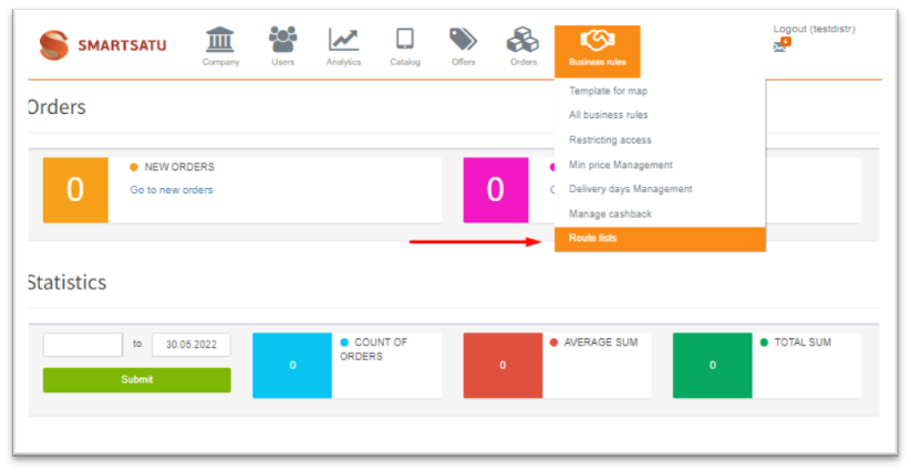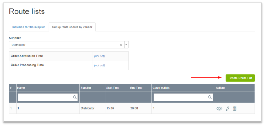 The configuration of route lists is available only to the Administrator. In turn, the supplier can only view the route lists configured for him.