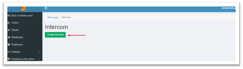 Click Intercom - to set the settings button.