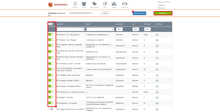 Выбор торговых точек из списка