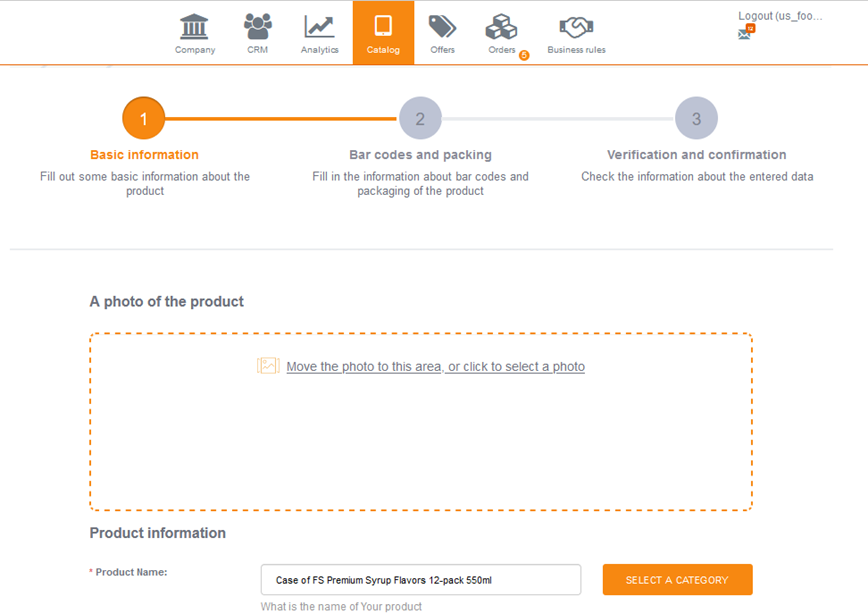 To create a new product, you need to go to the Offers section under the account of the catalog administrator or distributor. Next, by clicking on the + Add Product icon, start creating the product