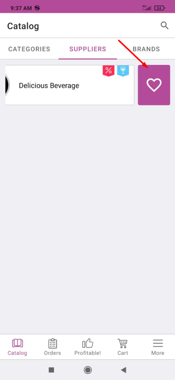 After adding to favorites, a “heart” icon will appear in the upper left corner of the supplier
