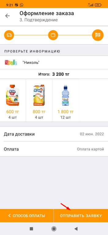 На следующем экране, выберите дату доставки и при необходимости можете оставить комментарий поставщику